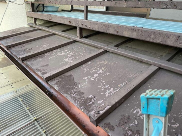 傷みが目立っていた屋根もしっかりケレン作業(錆などを落とす作業)をおこない、錆止めを塗布して仕上げました。