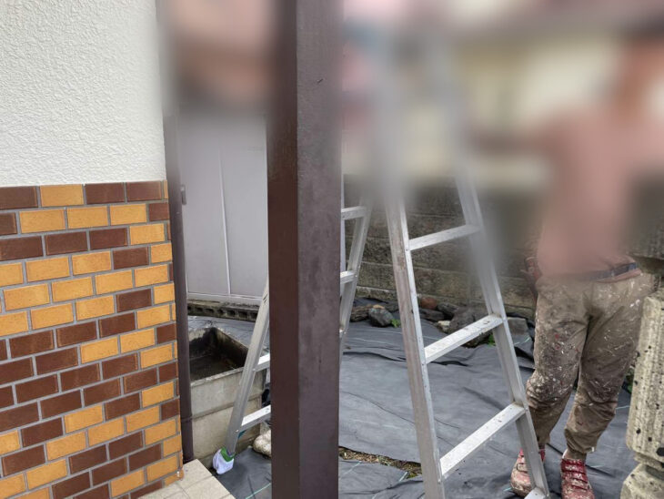 腐食していた玄関の化粧柱はコーキングで補修し、その上から塗装をしました。