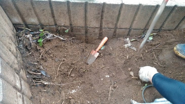後は小さい根っこを抜いて土を足して地面をならしたら終わりです。