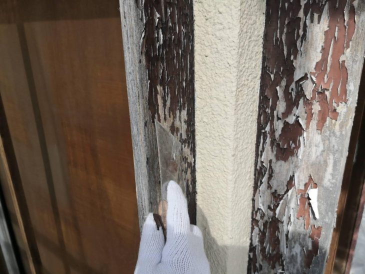 本日は既存の戸袋・軒天の撤去作業と、鉄部・木部の錆止め作業をおこないました。