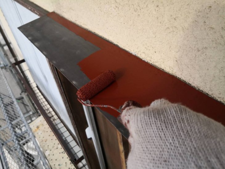 次に霧除け(鉄部)に錆止めを塗っていきます。