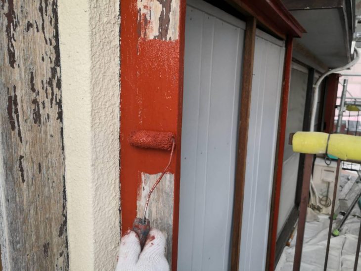 次に戸袋の木枠に錆止め(下塗り)を塗っていきます。