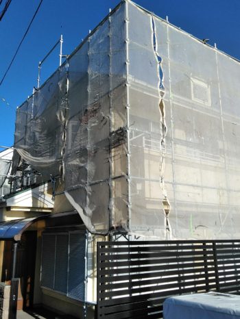 足場とシートがかかった様子です。