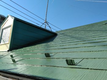 屋根の様子です。苔と塗料が剥がれているのが見受けられます。