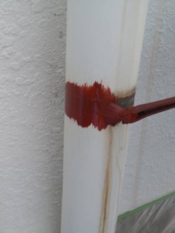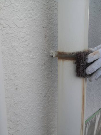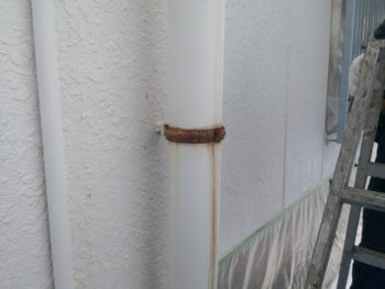 縦樋の劣化している様子です。錆が垂れてしまっています。