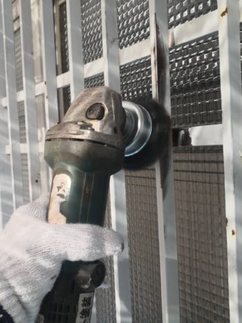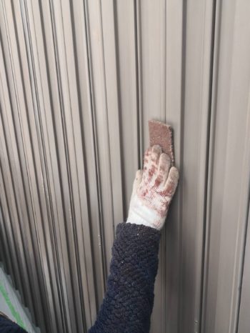 雨戸も鉄部の為、縦樋同様、専用の道具で傷や汚れを落としていきます。