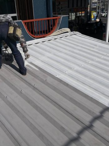 施工後の屋根の様子です。折板屋根の為、足元が悪く、手間がかかりました。