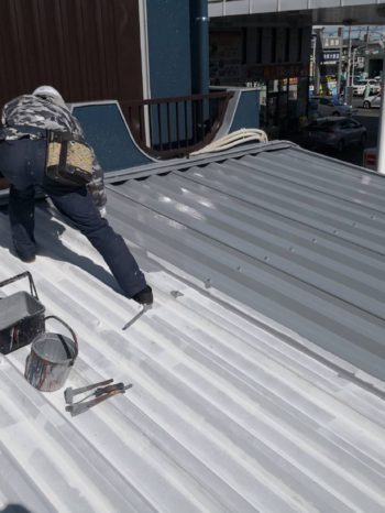 今回屋根の塗装工事もおこないました。錆止めを塗っている様子です。