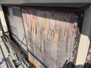 施工前、戸袋の様子です。劣化により、木部が剥がれてしまっています。