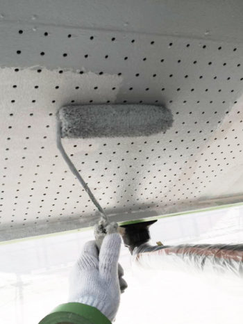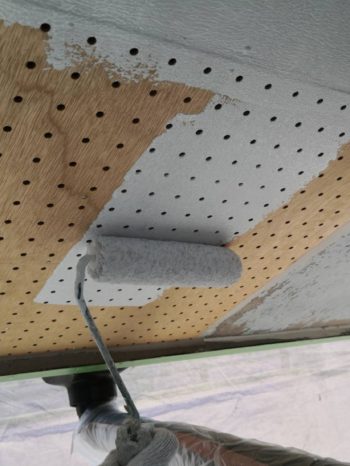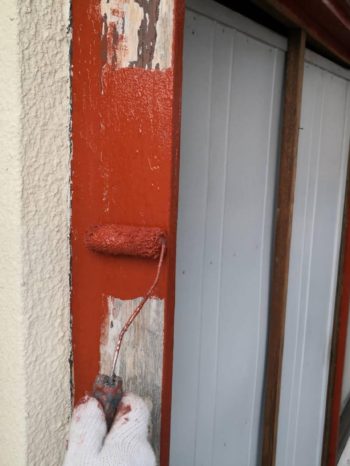 戸袋の木枠に錆止め(下塗り)を塗っていきます。