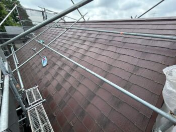 屋根の様子です。苔や汚れ、経年劣化によって割れている箇所も見受けられました。