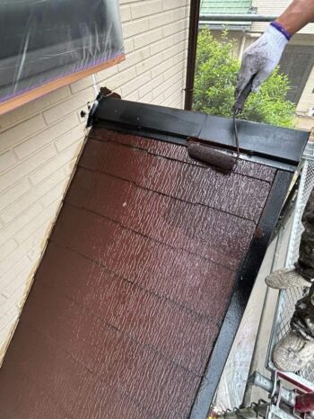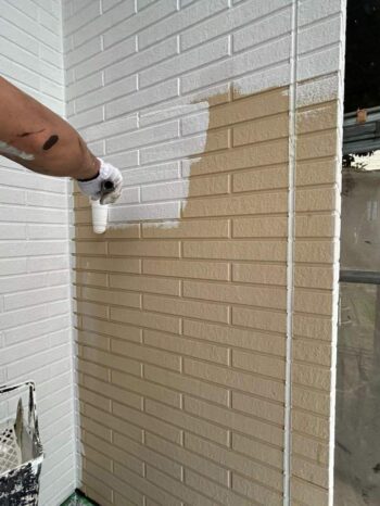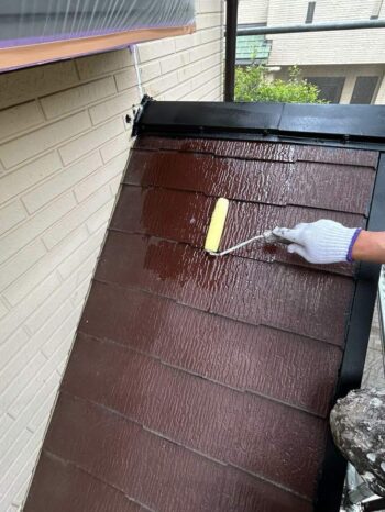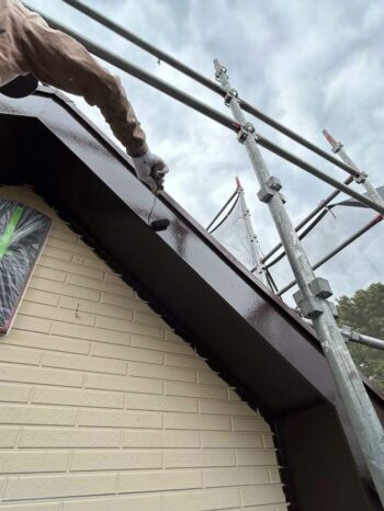 中塗りをした後、最後に上塗りをしたら軒天の塗装は完了です。