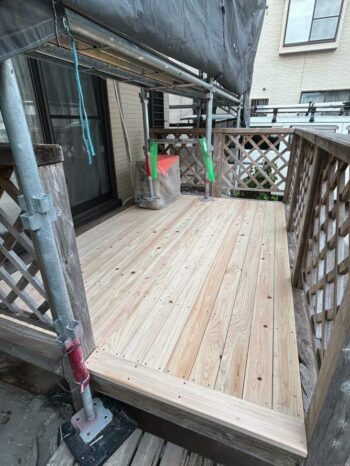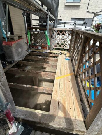 新しいウッドデッキを取り付けていきます。