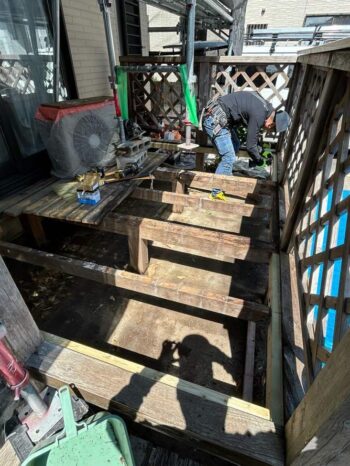 傷んでいたウッドデッキを取り外していきます。