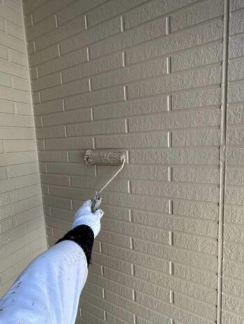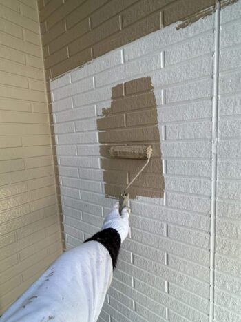 外壁の下塗り作業の様子です。