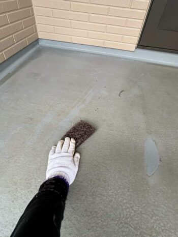 ベランダ防水のケレン作業の様子です。