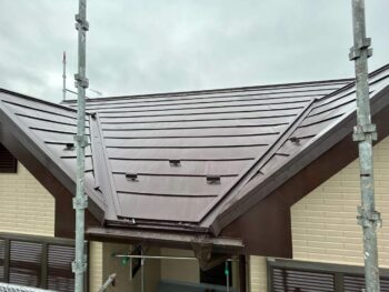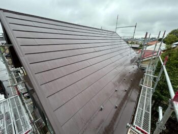屋根の様子です。スーパーガルテクトは遮熱性鋼板と断熱材の相乗効果で優れた断熱性能を発揮してくれます。