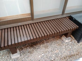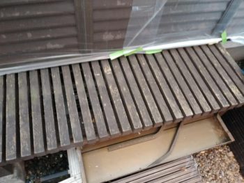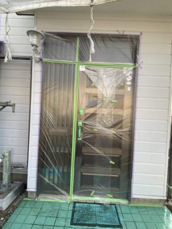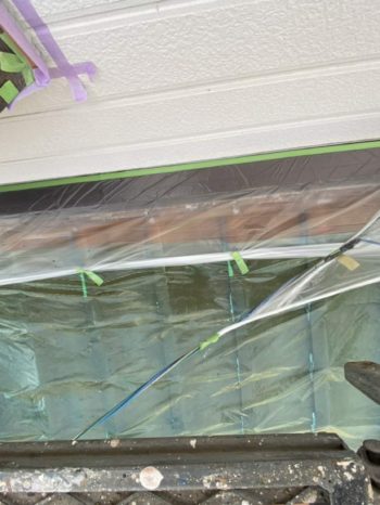 雨戸を塗るのに、外壁の塗料が付かないように養生をします。