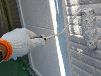 全体の養生、コーキング作業が完了しましたので下塗りをしていきます。